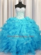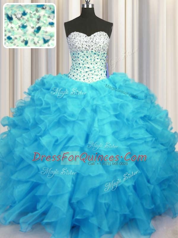 Dynamic Sleeveless Floor Length Beading and Ruffles Lace Up Quinceanera Gowns with Baby Blue