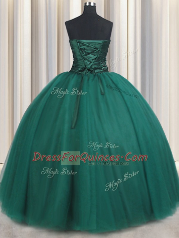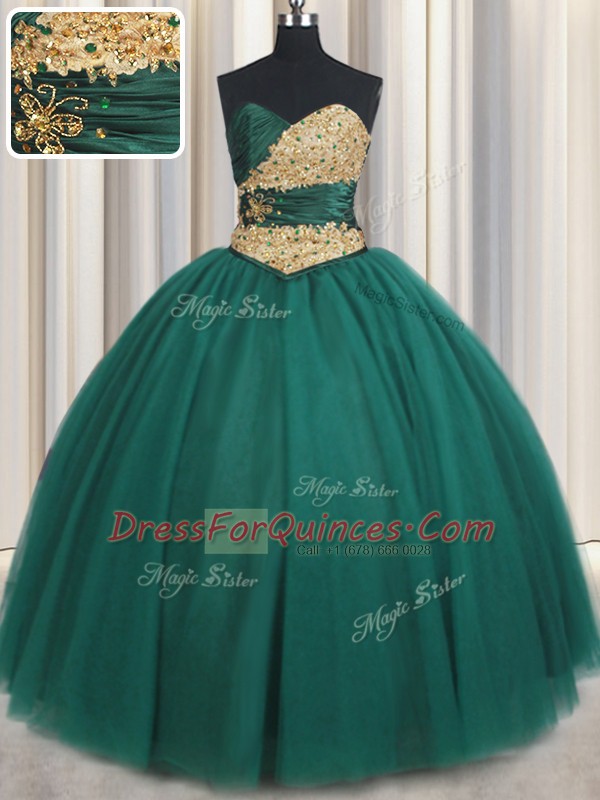Exceptional Peacock Green Lace Up Sweetheart Beading and Appliques Quinceanera Dress Tulle Sleeveless
