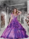 Exclusive Purple Quinceanera Gown with Appliques and Hand Made Flowers