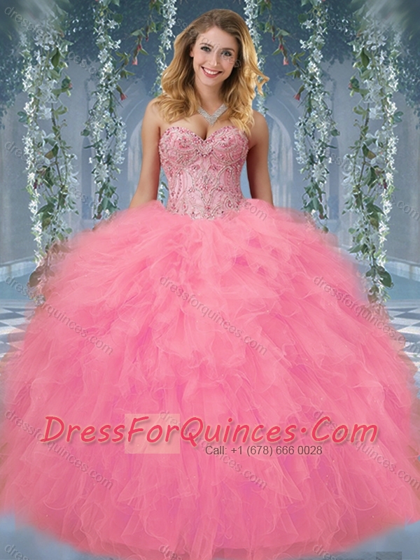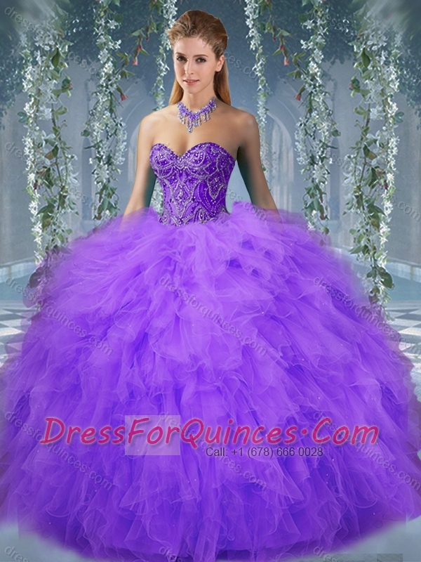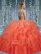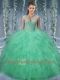 Exquisite Beaded and Ruffled Big Puffy Quinceanera Gown in Turquoise