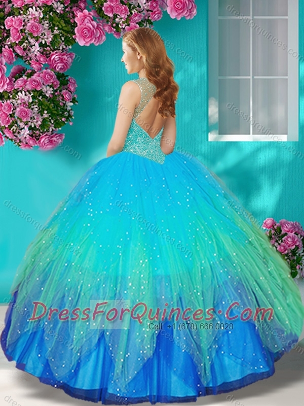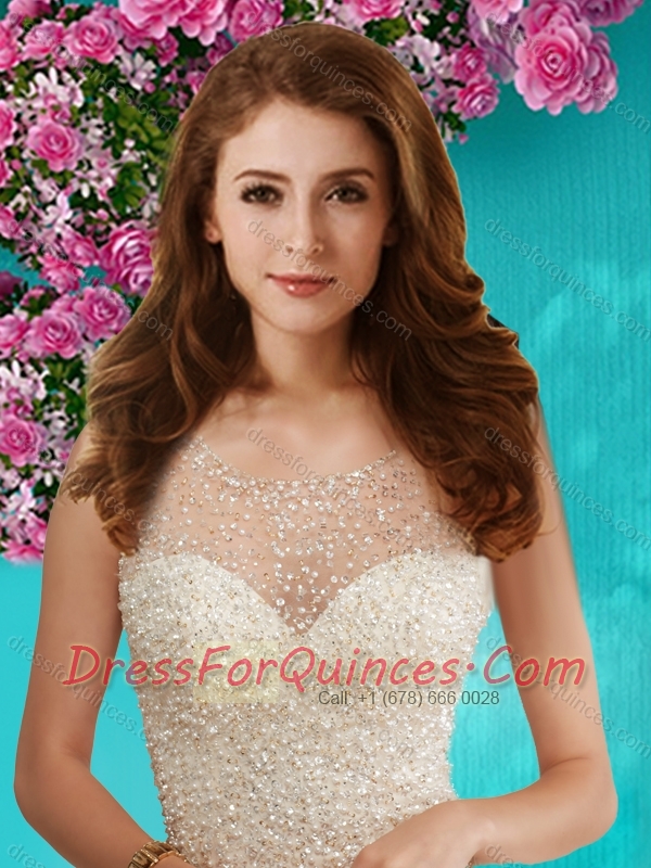 Exquisite See Through Beaded Scoop Quinceanera Dress with Backless