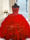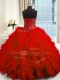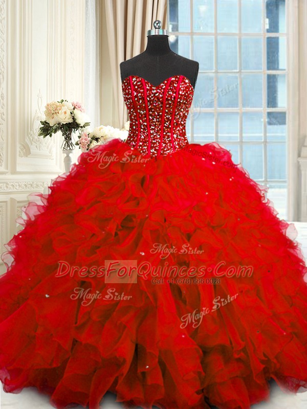 Extravagant Red Lace Up 15th Birthday Dress Beading and Ruffles and Sequins Sleeveless Floor Length