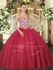 Fantastic Coral Red Straps Lace Up Beading and Appliques Quinceanera Gowns Sleeveless