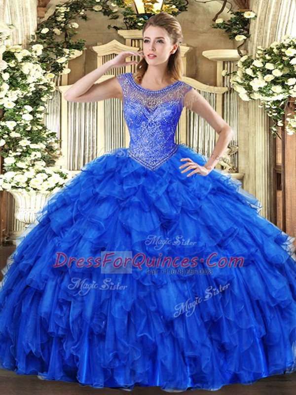 Fashion Organza Sleeveless Floor Length Quinceanera Gown and Beading and Ruffles