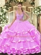 Fashionable Lilac Lace Up Straps Beading and Ruffled Layers Quinceanera Gown Organza Sleeveless