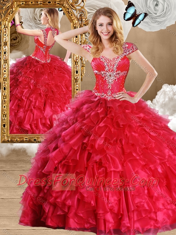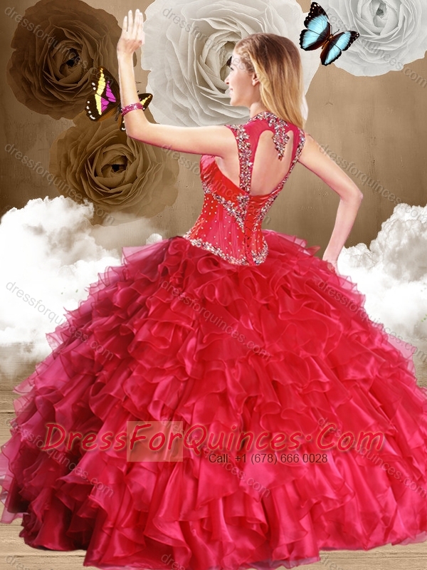 Fashionable Red Quinceanera Gowns with Beading and Ruffles