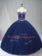 Floor Length Ball Gowns Sleeveless Navy Blue Quinceanera Gown Lace Up