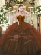 Floor Length Brown Quinceanera Gown Tulle Sleeveless Ruffles