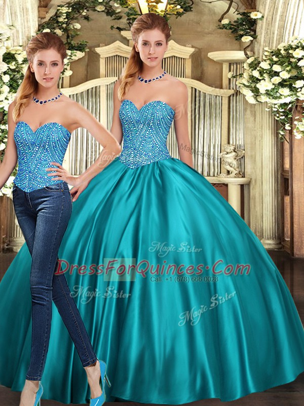 Floor Length Teal Ball Gown Prom Dress Sweetheart Sleeveless Lace Up