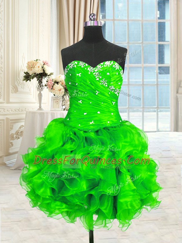 Four Piece Organza Lace Up Sweetheart Sleeveless Floor Length Vestidos de Quinceanera Beading and Ruffles and Ruching