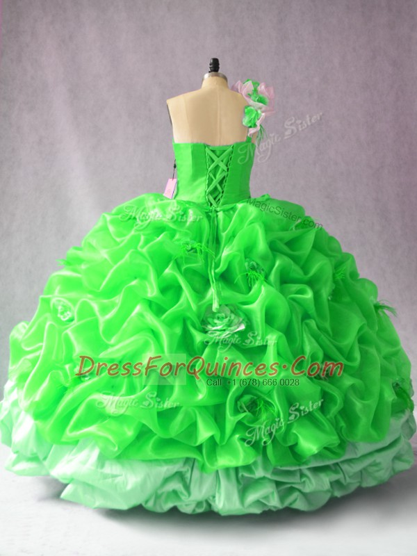 Free and Easy Sleeveless Floor Length Pick Ups and Hand Made Flower Lace Up Vestidos de Quinceanera