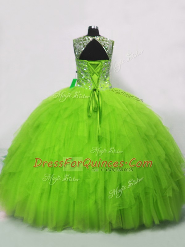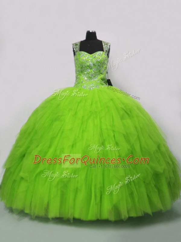 Glorious Tulle Lace Up Straps Sleeveless Floor Length Ball Gown Prom Dress Beading and Ruffles