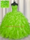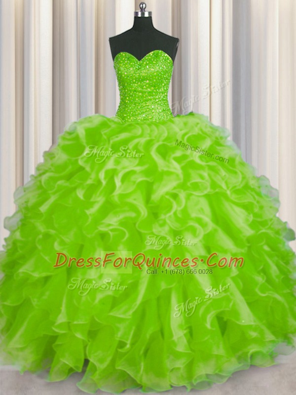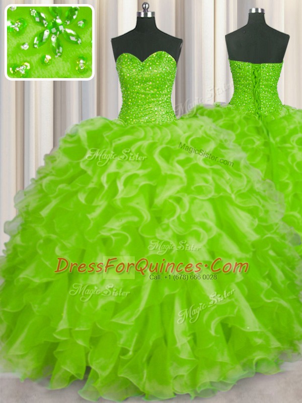 Glorious Yellow Green Lace Up Sweetheart Beading and Ruffles Sweet 16 Dress Organza Sleeveless
