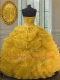 Gold Sleeveless Floor Length Beading and Ruffles and Pick Ups Lace Up Sweet 16 Quinceanera Dress