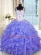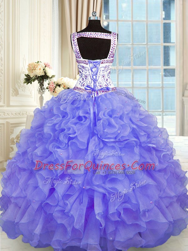 Gorgeous Purple Ball Gowns Beading and Appliques and Ruffles Ball Gown Prom Dress Lace Up Organza Sleeveless Floor Length