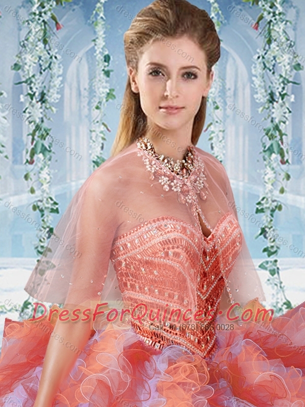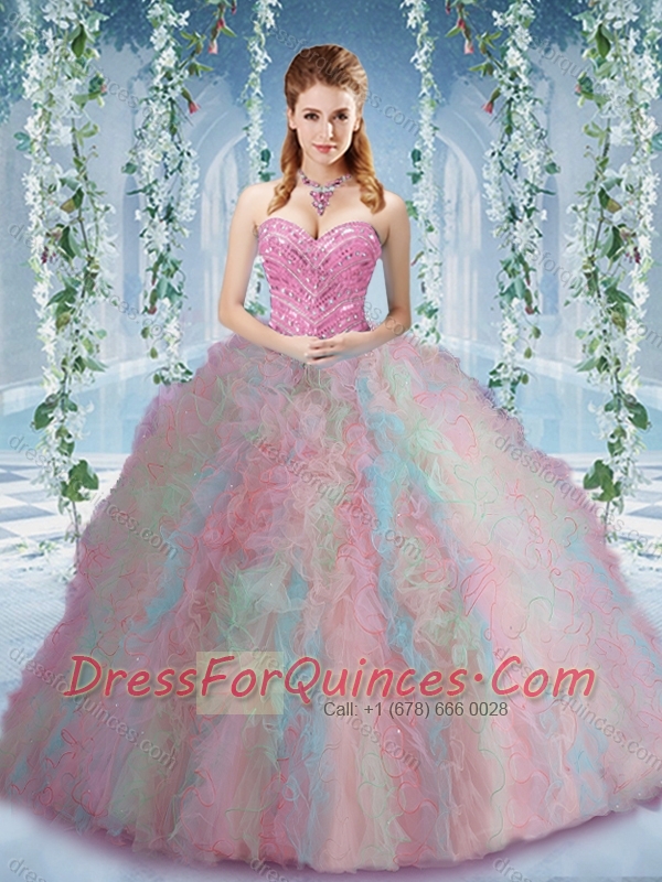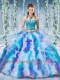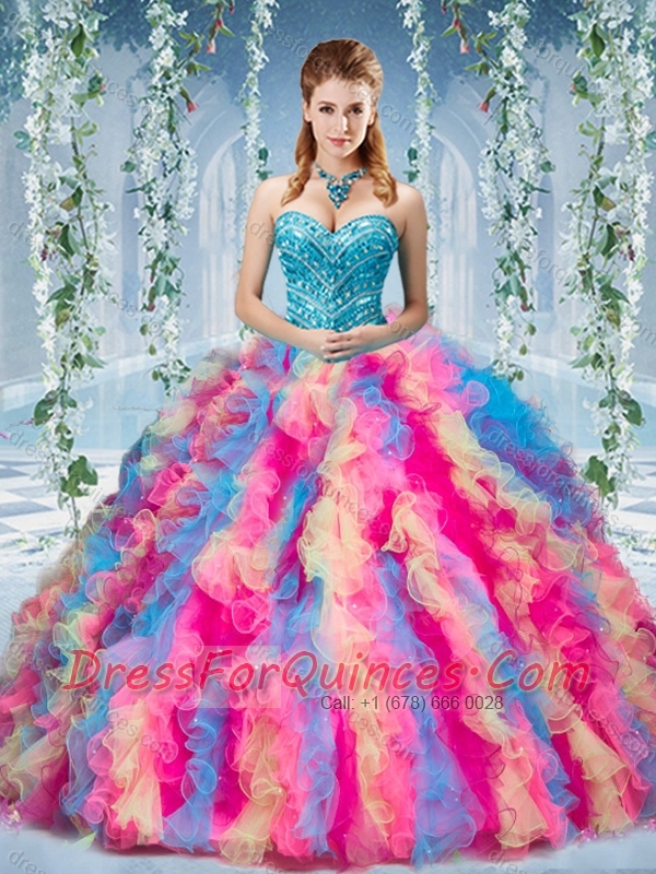 Gorgeous Rainbow Colored Big Puffy Quinceanera Dress with Beading and Ruffles