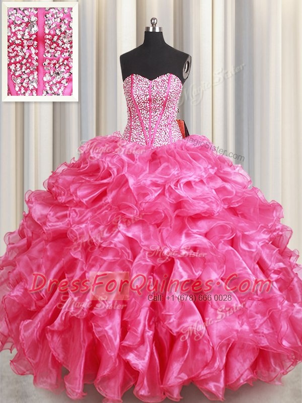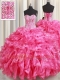 Gorgeous Sleeveless Organza Floor Length Lace Up Quinceanera Gown in Hot Pink with Beading and Ruffles