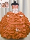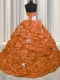 Graceful Orange Red Taffeta Lace Up Sweet 16 Quinceanera Dress Sleeveless With Brush Train Appliques and Sequins and Pick Ups