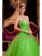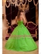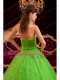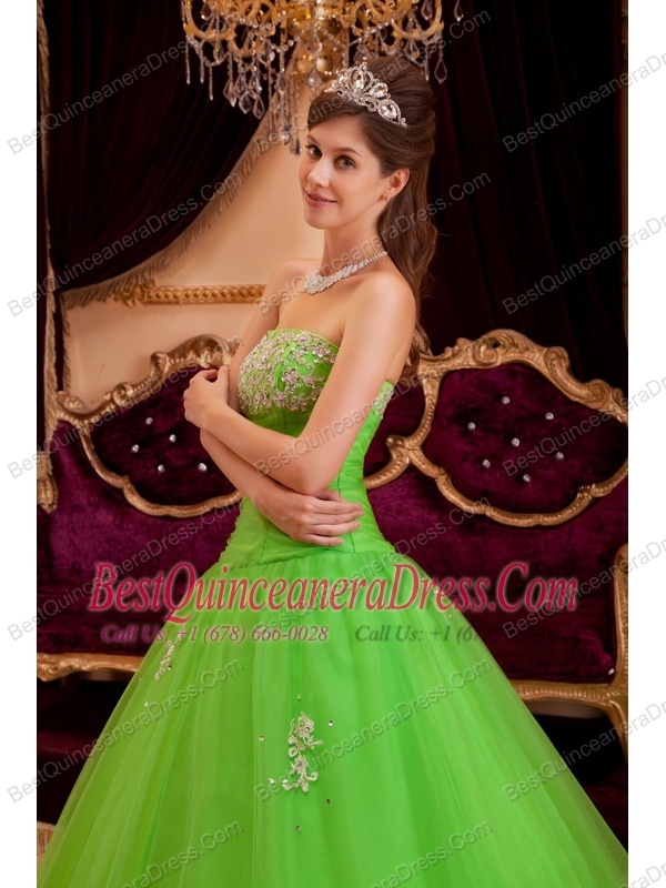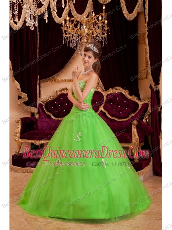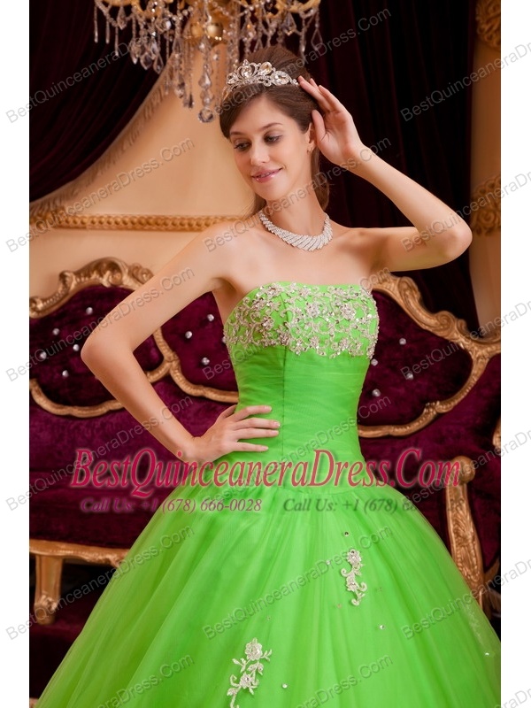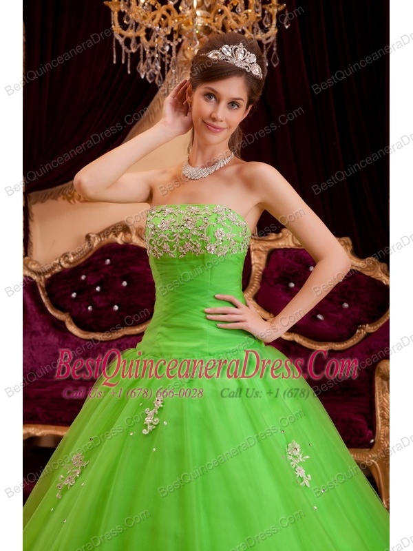 Green A-line / Princess Strapless Floor-length Appliques Tulle Quinceanera Dress