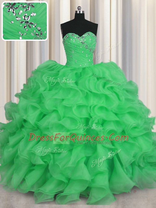Green Sweet 16 Dress Military Ball and Sweet 16 and Quinceanera and For with Beading and Ruffles Sweetheart Sleeveless Lace Up