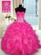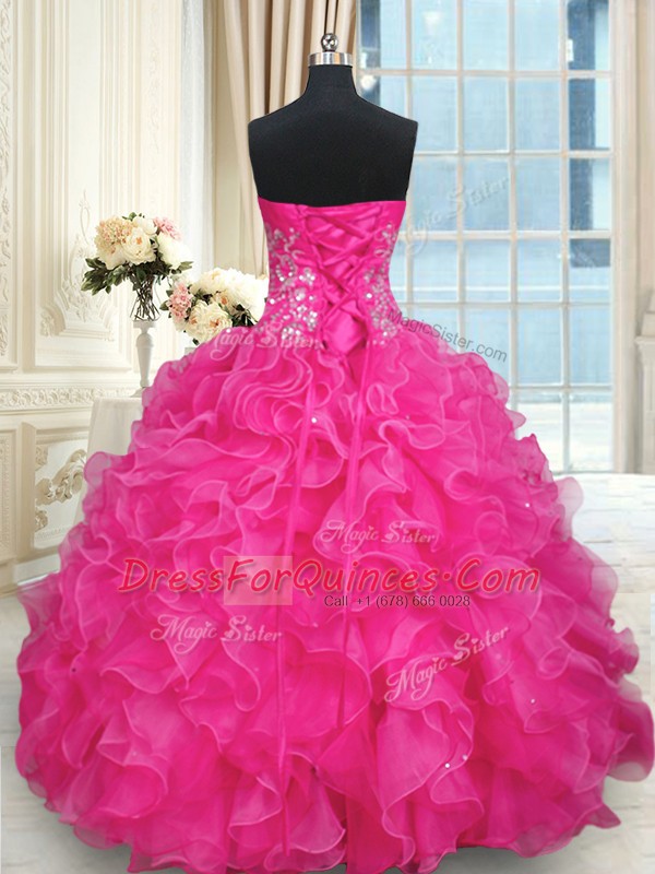 Hot Pink Sleeveless Beading and Appliques and Ruffles Floor Length Quince Ball Gowns