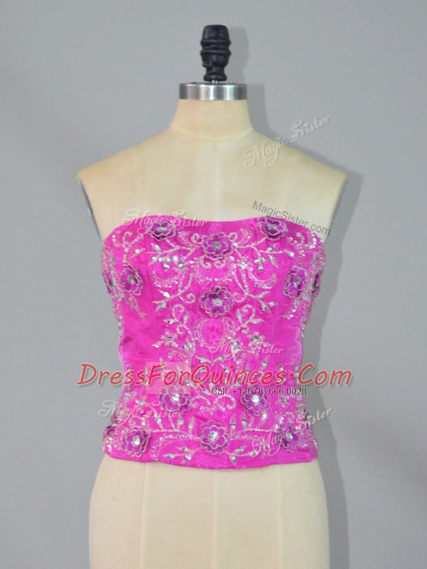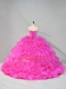 Hot Pink Strapless Lace Up Beading and Ruffles Ball Gown Prom Dress Court Train Sleeveless