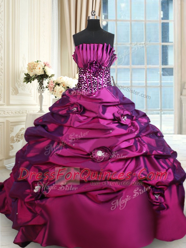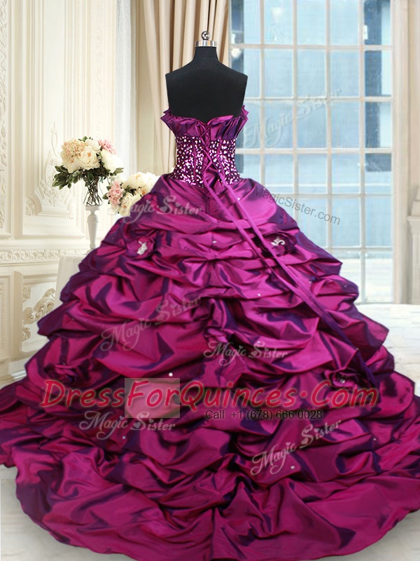 Lace Up Quinceanera Dress Purple for Military Ball and Sweet 16 and Quinceanera with Beading and Sequins Brush Train