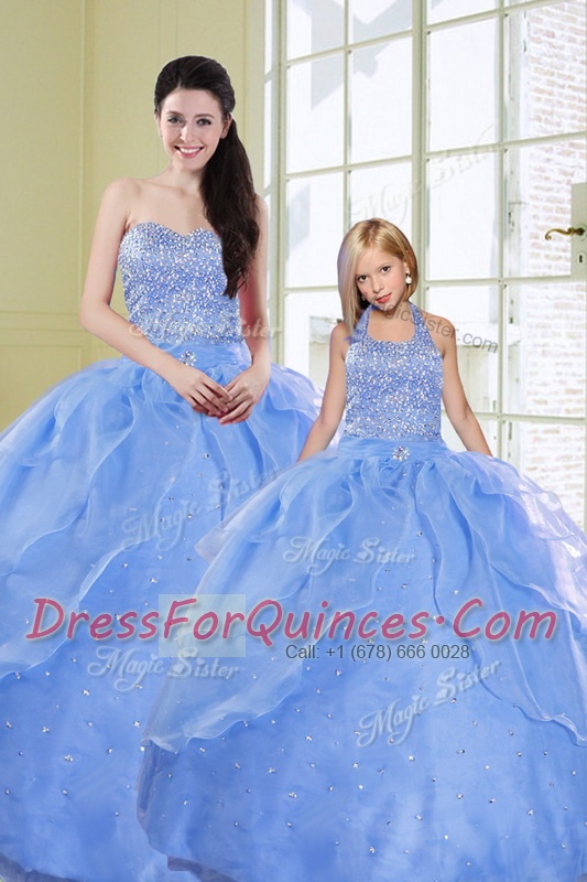 Latest Light Blue Sweetheart Lace Up Beading Sweet 16 Dress Sleeveless