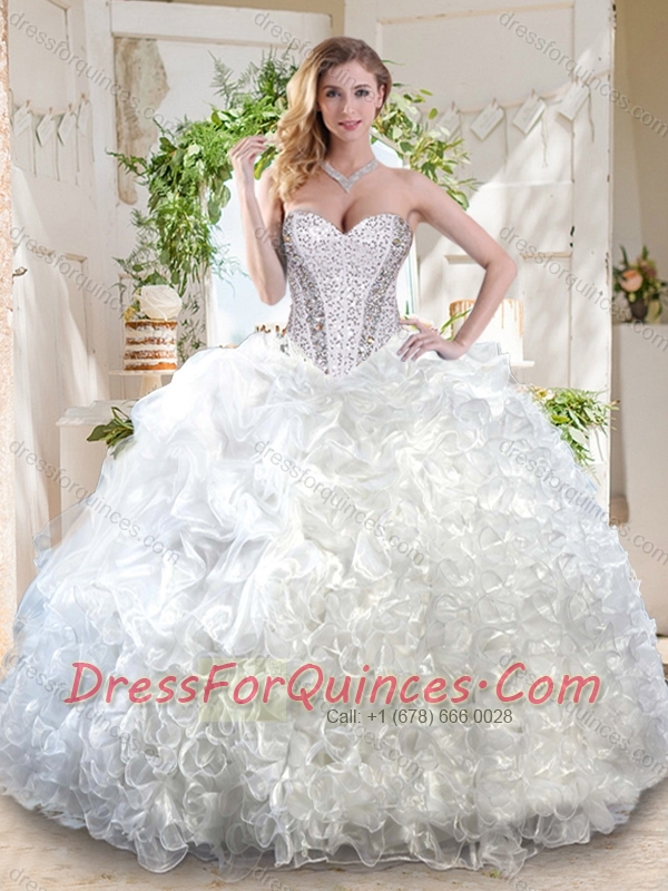 Latest Organza White Quinceanera Dress with Beading and Ruffles