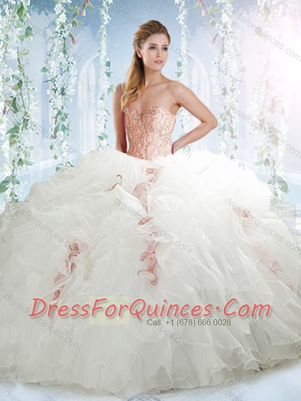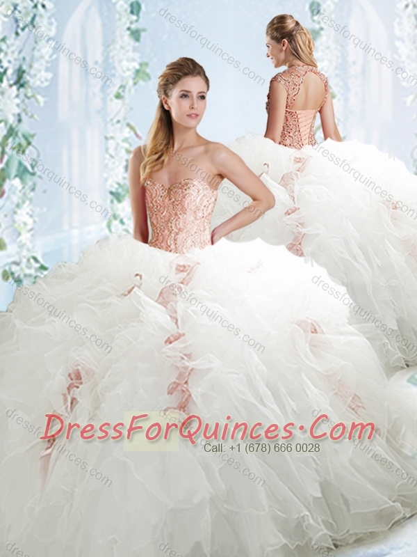Lovely Beaded and Ruffled White Detachable Quinceanera Dresses in Organza