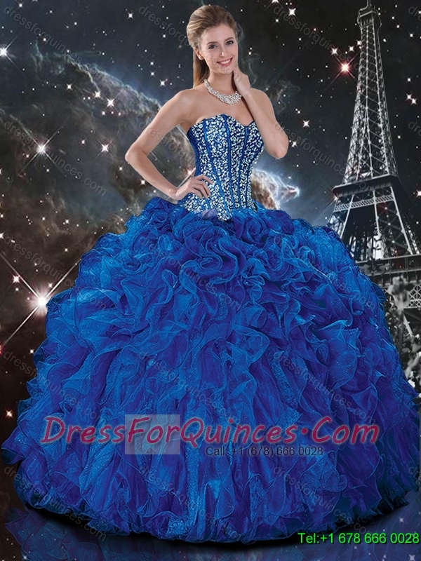 Luxurious Beaded and Ruffles Quinceanera Dresses in Royal Blue 2016