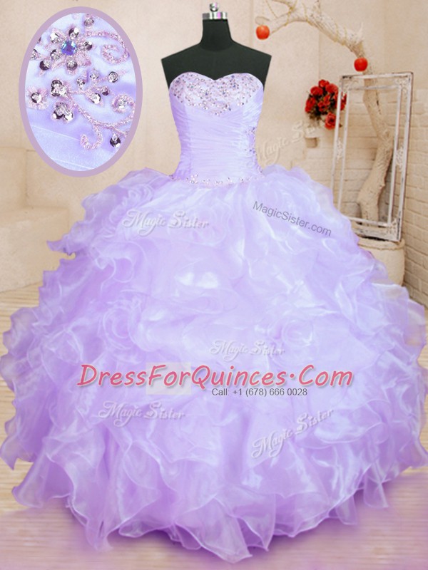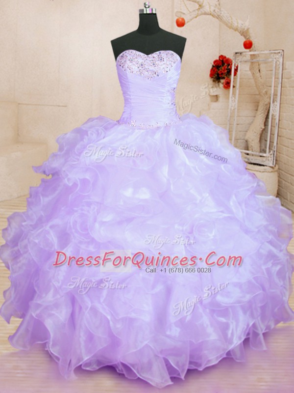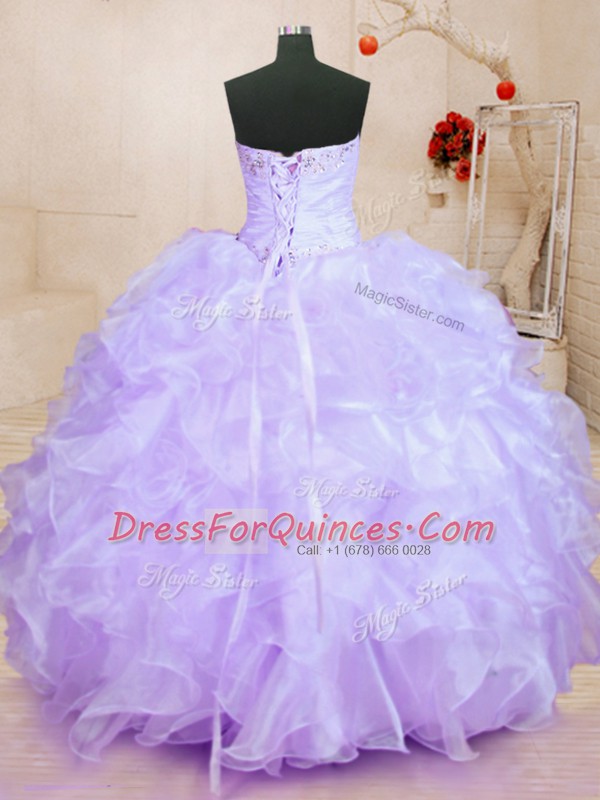 Modest Sweetheart Sleeveless Organza Quinceanera Dress Beading and Ruffles Lace Up