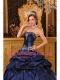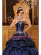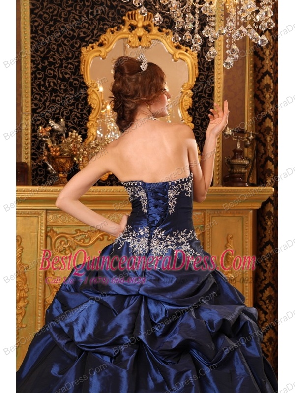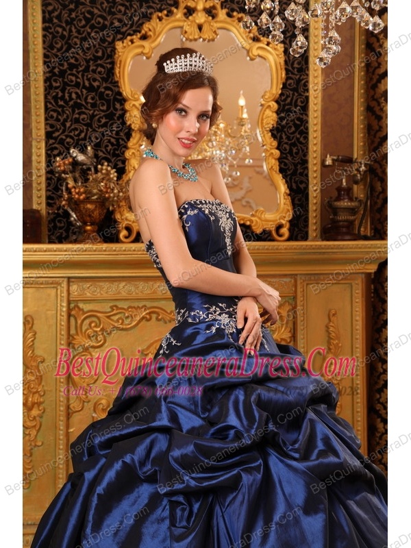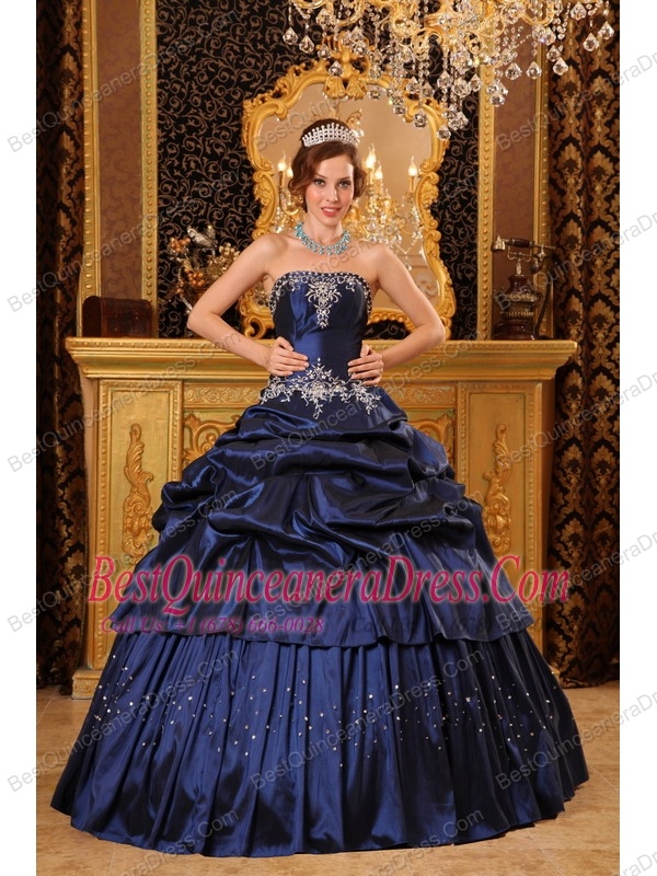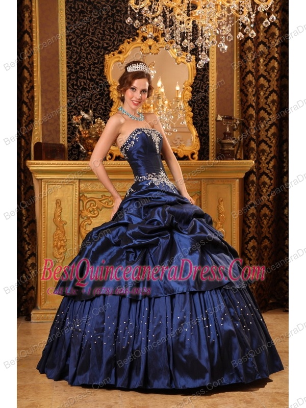 Navy Blue Ball Gown Strapless Floor-length Appliques Taffeta Quinceanera Dress