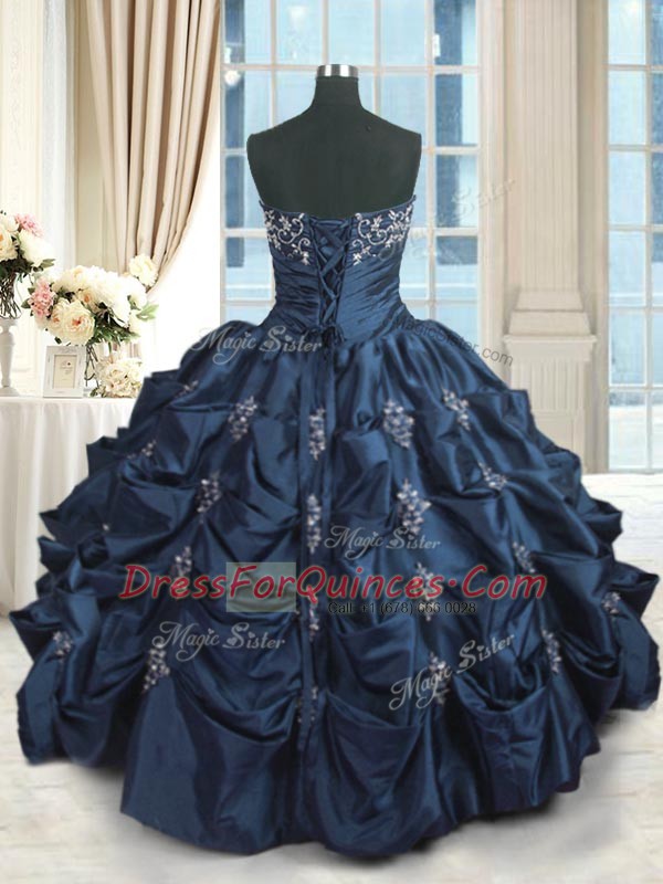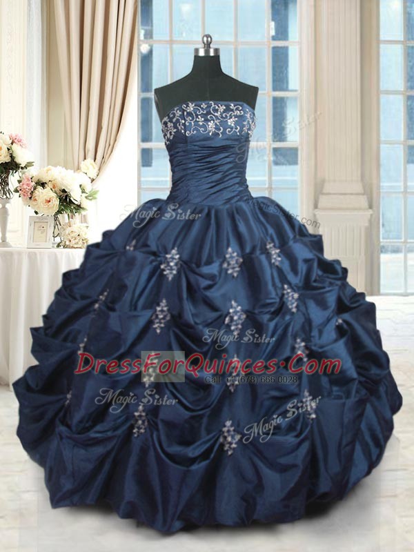 Navy Blue Quinceanera Dresses Military Ball and Sweet 16 and Quinceanera and For with Beading and Pick Ups Strapless Sleeveless Lace Up