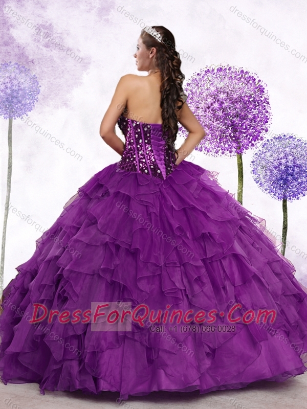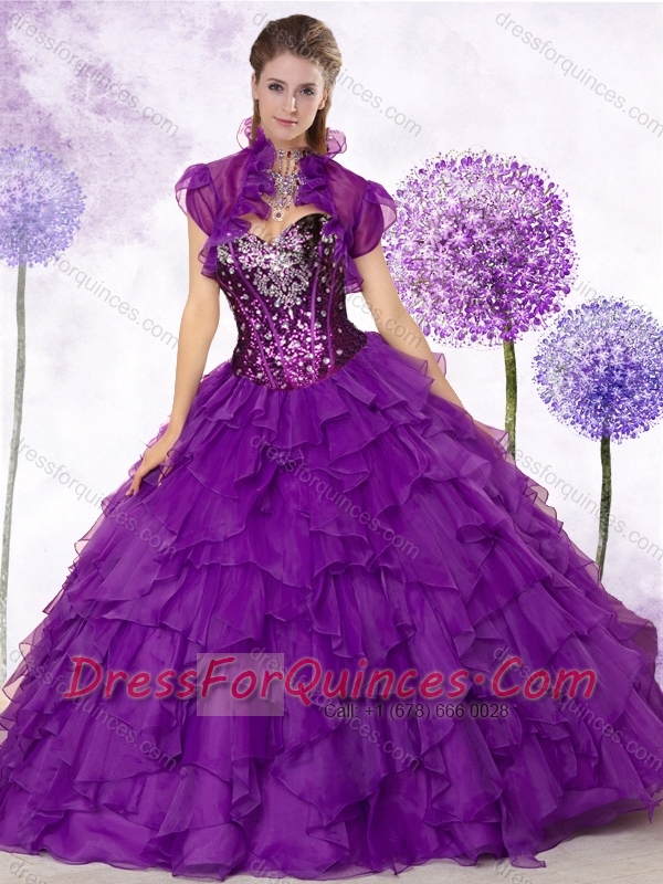 New Style Sweetheart Ruffles and Sequins Quinceanera Dresses in Purple