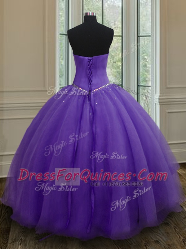 Organza Sleeveless Floor Length Vestidos de Quinceanera and Beading
