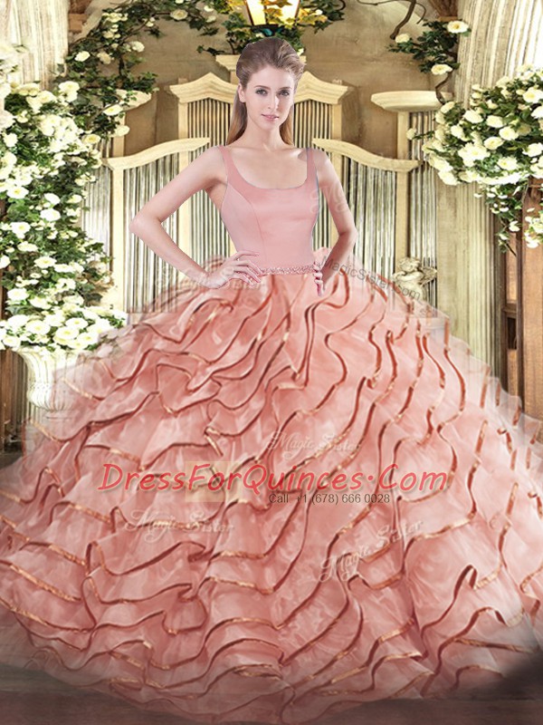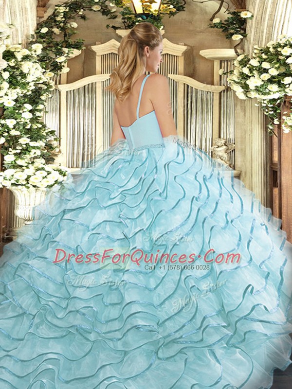 Organza Sleeveless Quinceanera Gowns Brush Train and Ruffled Layers