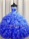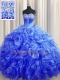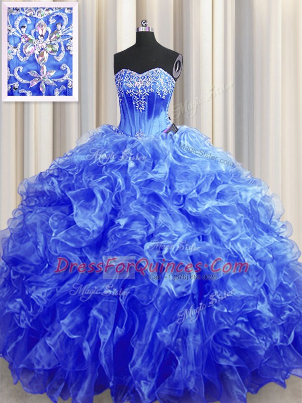 Organza Sweetheart Sleeveless Sweep Train Lace Up Beading and Ruffles Vestidos de Quinceanera in Royal Blue