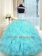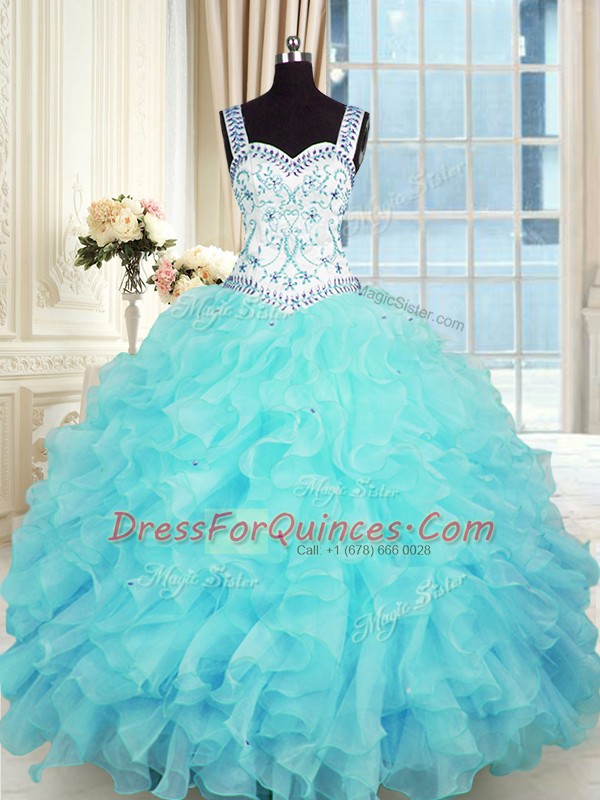 Perfect Aqua Blue Quinceanera Dress Military Ball and Sweet 16 and Quinceanera and For with Beading and Appliques and Ruffles Sweetheart Sleeveless Lace Up