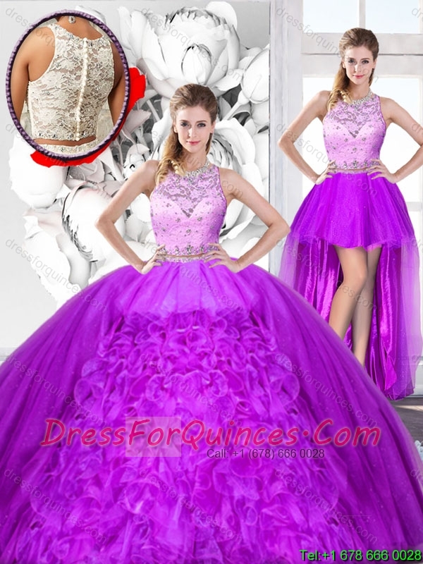 Perfect Beaded and Ruffles Detachable Quinceanera Dresses with Scoop