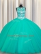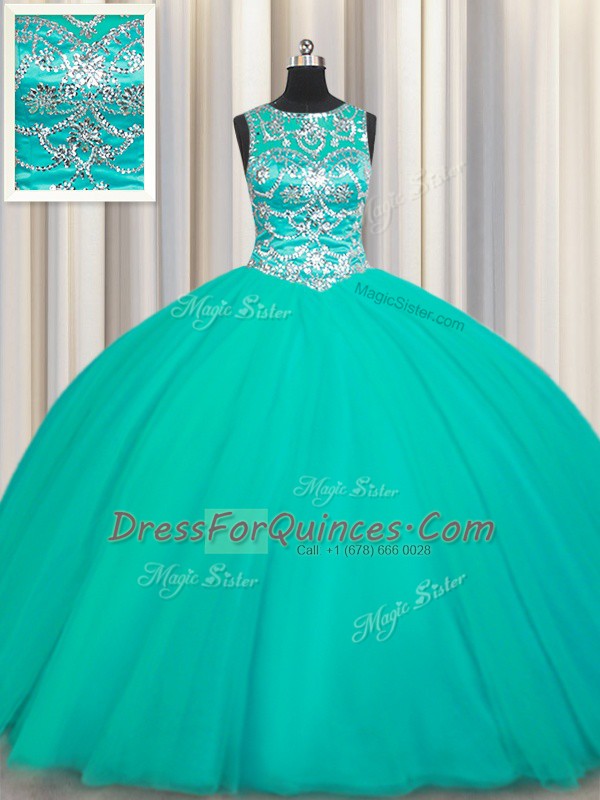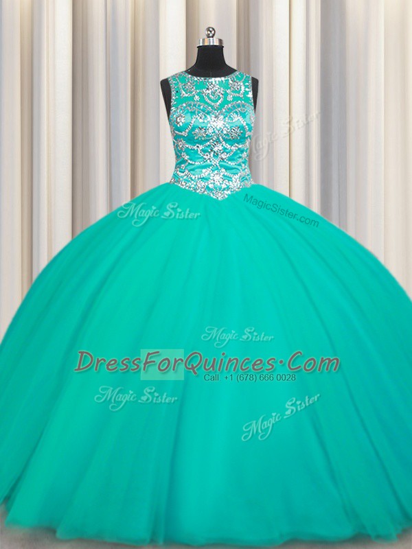 Popular Scoop Sleeveless Lace Up 15th Birthday Dress Turquoise Tulle