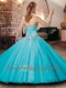 Pretty Visible Boning Tulle Beaded Quinceanera Dress in Aqua Blue