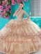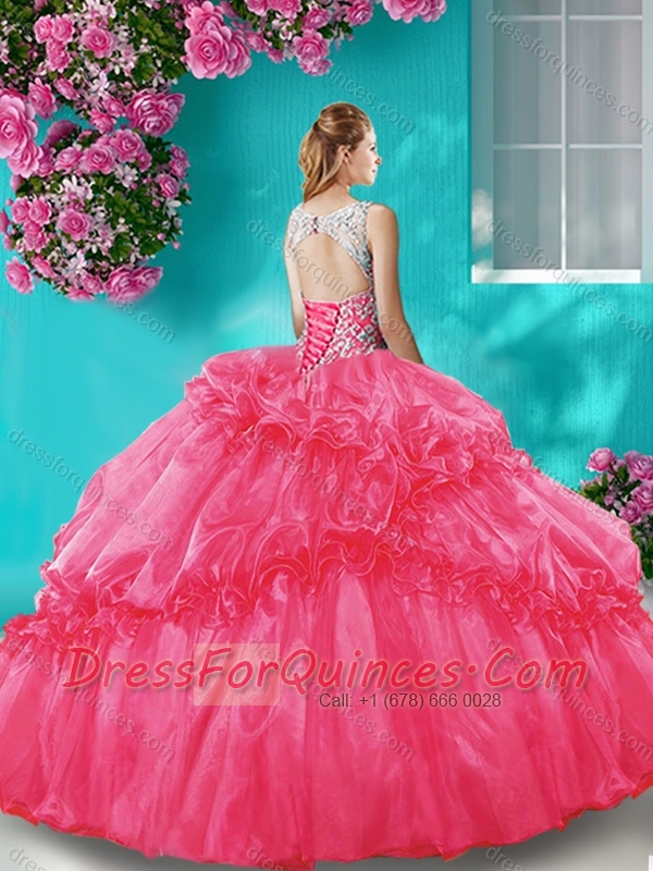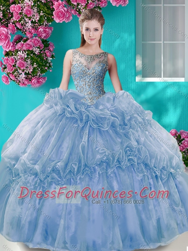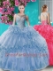 Puffy Skirt See Through Beaded Bodice Quinceanera Dress with Scoop