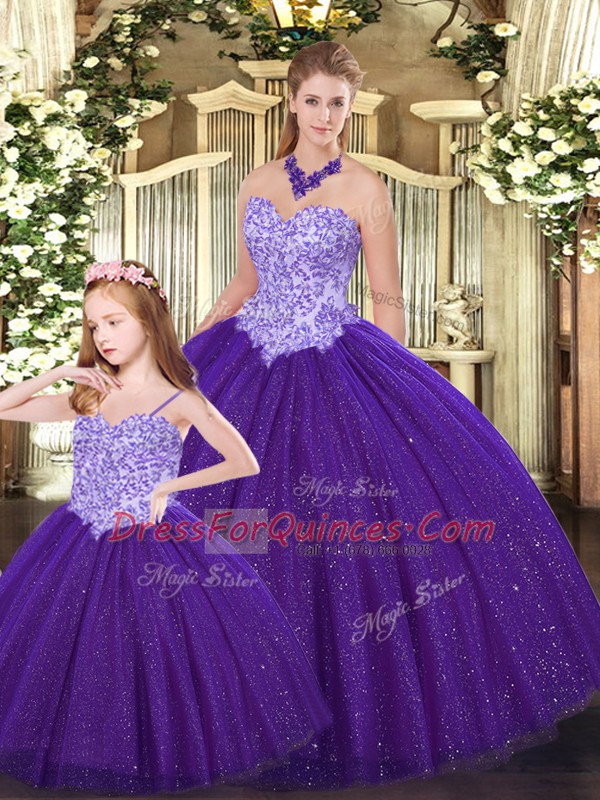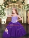 Purple Ball Gowns Beading Sweet 16 Dresses Lace Up Tulle Sleeveless Floor Length