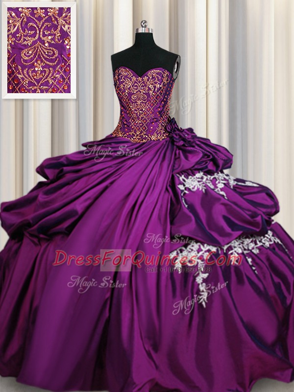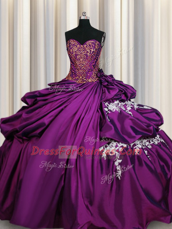 Purple Ball Gowns Taffeta Sweetheart Sleeveless Beading and Appliques Floor Length Lace Up Quinceanera Gown
