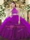 Purple Two Pieces Tulle Halter Top Sleeveless Beading and Ruffles Floor Length Backless 15th Birthday Dress