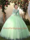 Scoop Apple Green Long Sleeves Floor Length Appliques Lace Up 15 Quinceanera Dress