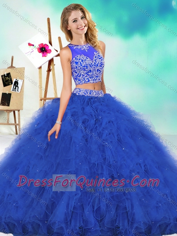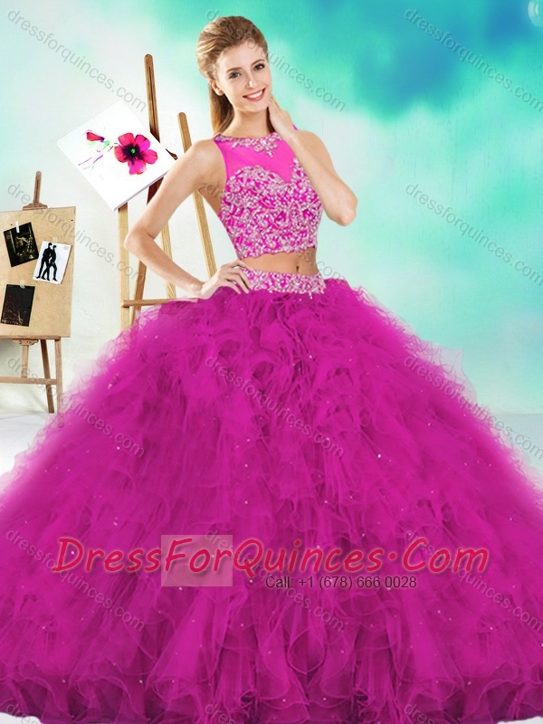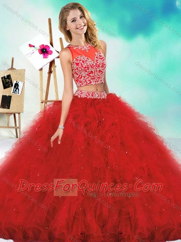 See Through Two Piece Red Quinceanera Dress with Beading and Ruffles