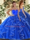 Sexy Blue Sleeveless Organza Lace Up Quinceanera Gown for Military Ball and Sweet 16 and Quinceanera