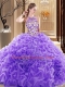 Sexy Lavender Organza Backless Vestidos de Quinceanera Sleeveless Brush Train Embroidery and Ruffles